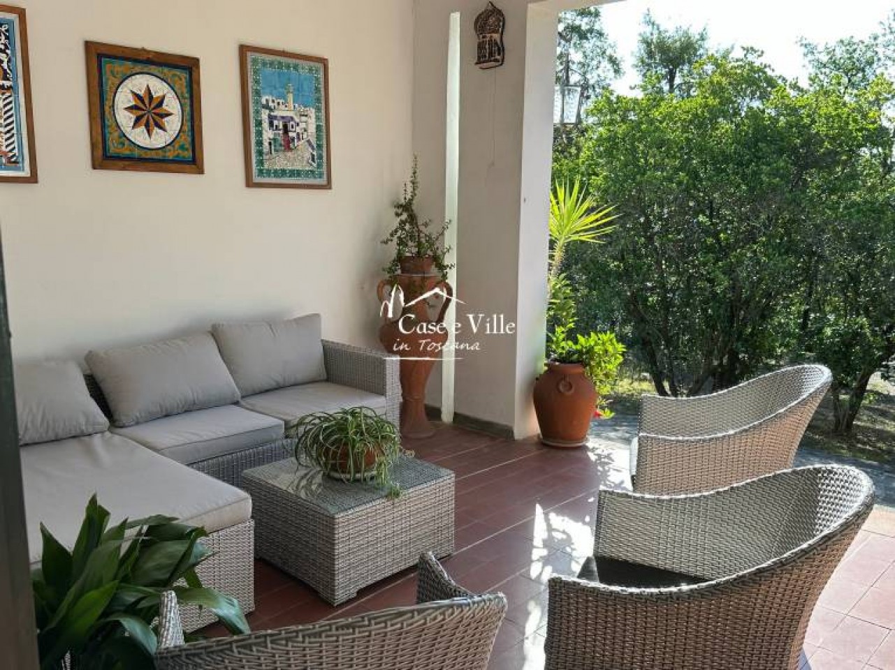 Bella villa in posizione dominante in una tranquilla zona residenziale circondata da parco privato di 5000 mq. La parte principale della casa è disposta su un unico piano di circa 200 mq con ampi spazi che accolgono il salone con camino, uno studio, una grande sala da pranzo e la cucina abitabile. Nella zona notte troviamo 3 camere doppie e due bagni. Ottima dimensione per essere vissuta completamente ed in maniera incredibilmente comoda-. Da tutte le stanze si accede all´esterno con la possibilità di vivere pienamente le terrazze, la veranda coperta adibita a living, ed il giardino.